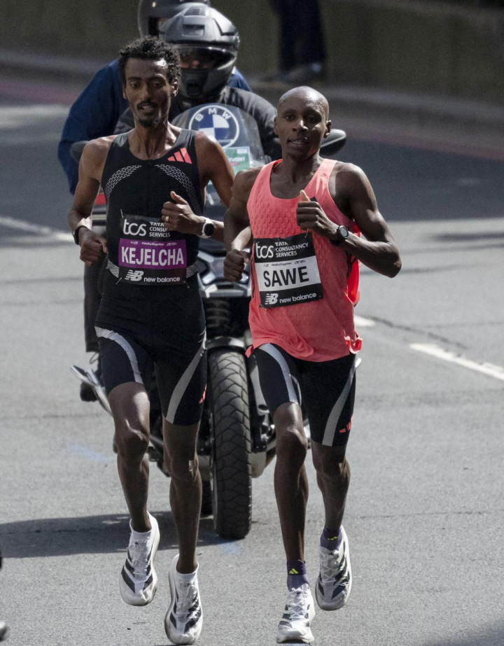 4月26日,肯尼亚选手萨维(右)在比赛中。新华社发(史蒂芬·程摄)
