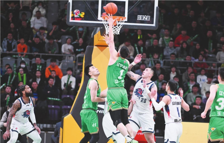 成例赛的两场交锋中,辽鲁两队打得互为表里。本报记者孙海涛摄